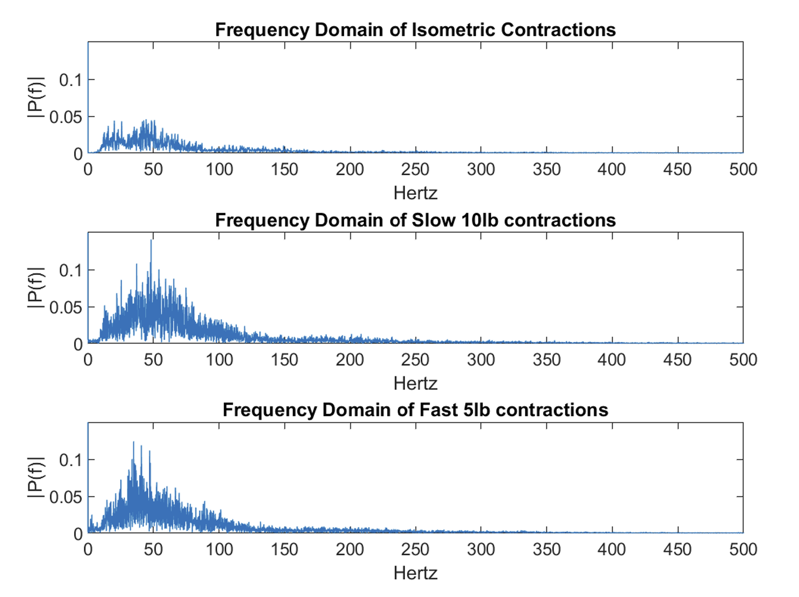 - Compared frequency spectra of isometric vs. dynamic contractions