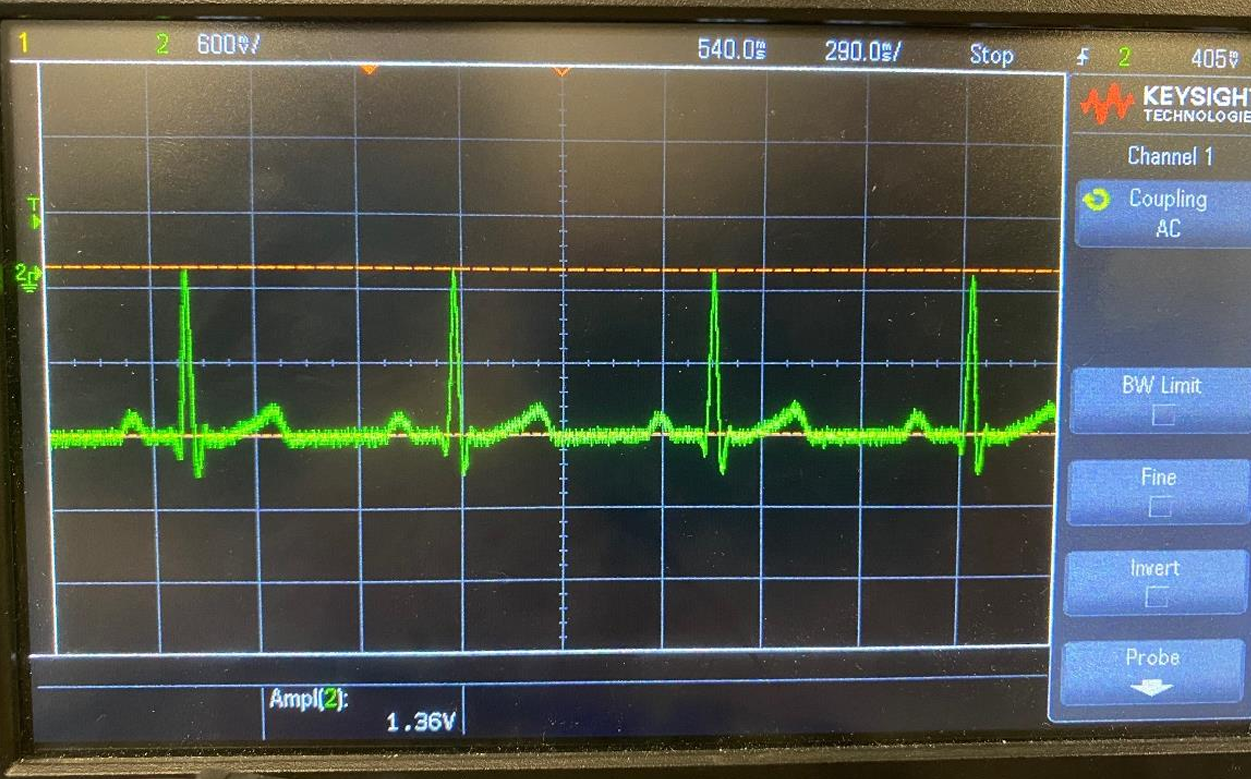 - Recorded ECG signals at varying heart rates (60, 80, 120 BPM) using patient simulator